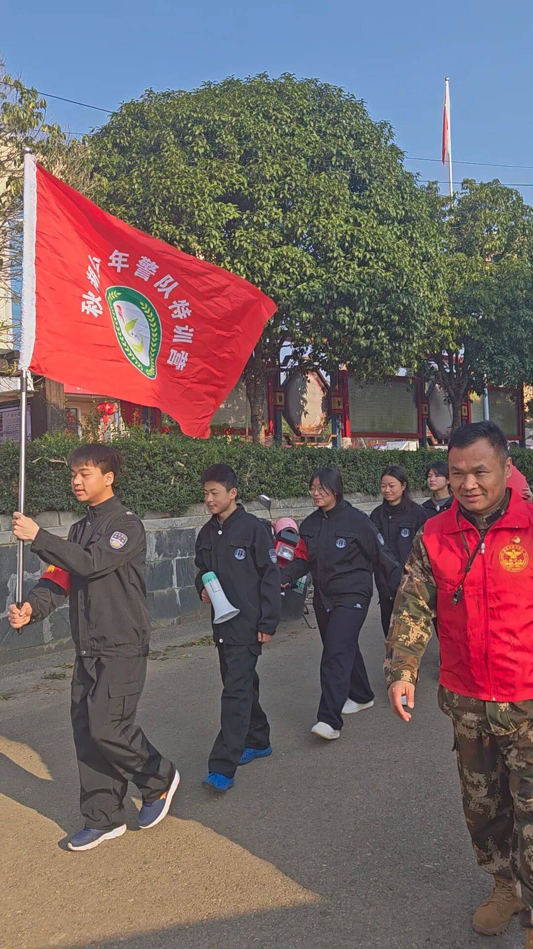 2023年,秋湖村少年警队成立了。这个“警队”没有过多庄重的老实,由村两委牵头,学校共同,家长参取,娄底市关工委捐队服、供给急救包,还联系湖南学院的专家进行培训。警队设置了平安宣传岗、现患排查岗、敬老办事岗等岗亭,每个孩子都能找到本人的职责——下学去池塘边巡查,看看能否有人玩水;绘制手抄报正在村里宣传栏;拿着小喇叭用方言给白叟防诈骗学问。